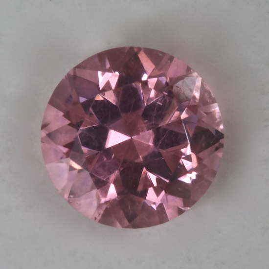 The pinks go rolling along with this standard round brilliant that is eye clean and flashy. The pastel hue is a baby pink and weighs .88 carats.
