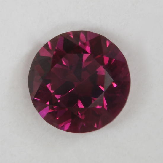 Darker orange pink droplet of color. This standard round brilliant's darker tone makes its color flash driven. It appears to be eye clean and weighs .77 carats.