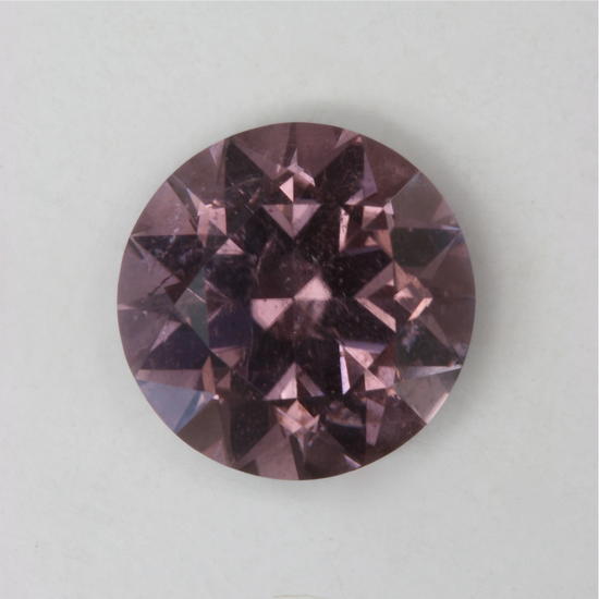 Peculiar purple from Madagascar, round This purple from Madagascar is a mixture of pink, purple and gray. It is rather peculiar. The standard round brilliant is lightly included and of moderate tone. It weighs2.56 carats.