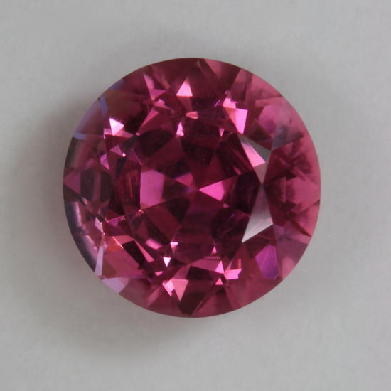 Not every tourmaline in the collection can be exceptional. I never made such an effort to buy only exceptional rough. I would not have been able to keep cutting. The make up of the collection real shows windows of opportunity that I had to buy different tourmalines as they briefly became available. One color and tone level that has been constantly available over the years is the stuff of this posted gemstone. It is a fine medium rich pink that is eye clean and flashy. It was cut as usual in a standard round brilliant (oval are about equal in usefulness) and weighs 2.09 carats.