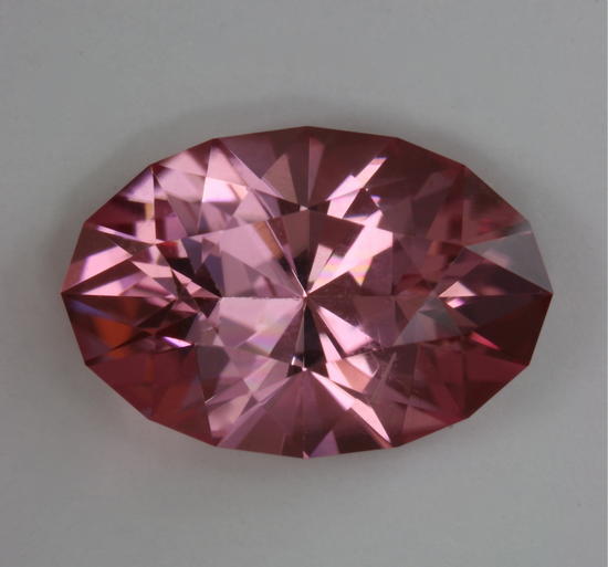 A fine very transparent, medium toned, pink oval. This oval is really a clean bright pink without any problems except for a minor bit of chipping on the keels. Chipping like this indicates that the stone is brittle from treatment by man or nature. It weighs 4.22 carats.