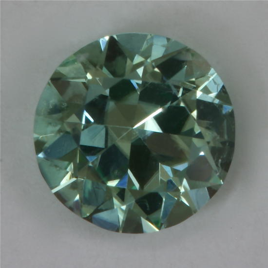 This standard round brilliant is from Afghanistan. It is a pastel blue green that is eye clean and with fine crystal. It weighs .76 carats.