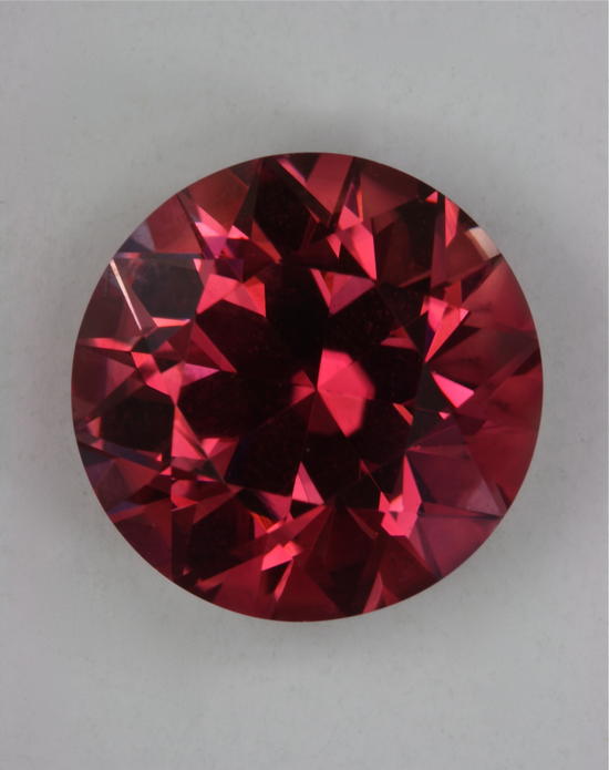 This standard round brilliant is a fine example of an orange red colored tourmaline. It is eye clean and bright and helps fill the color wheel. It weighs 4.98 carats.