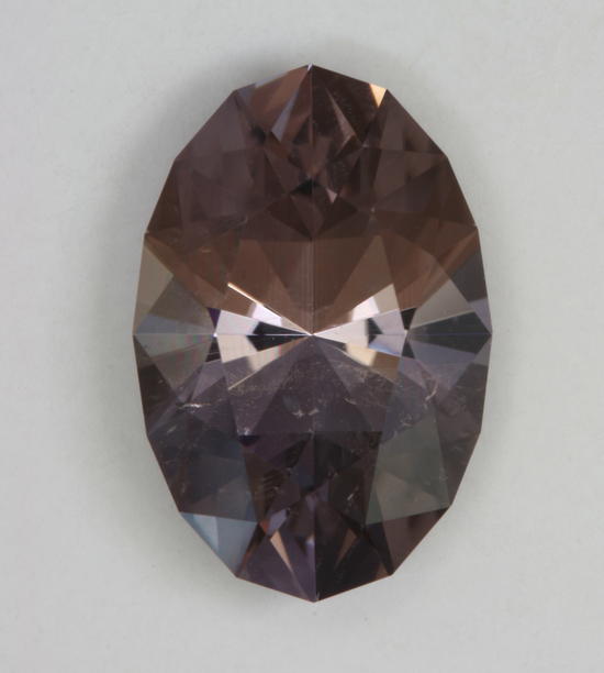 This gemstone has a place in the collection not because of its great beauty, but it is attractive, or size, though it is a decent size, or clarity, though it is has good crystal or …  It is here because this collection is the result of a quest to cut and collect as many colors of tourmaline as I could assemble.  Now I certainly violated a single minded drive  to never get anything tourmaline that didn’t help fill the color wheel.  I just had to indulge in Namibian blues, Nigerian reds etc. but when something different in tourmaline came along I had to try and get some.  This gemstone is a purple without copper as a chromophore.  It is a mild pastel with a better saturation than some other examples I have purchased, but it just doesn’t have the edge that copper purples have.  Traditionally pinks that had a purplish cast were not highly valued and I think that this gemstone probably falls into that category.