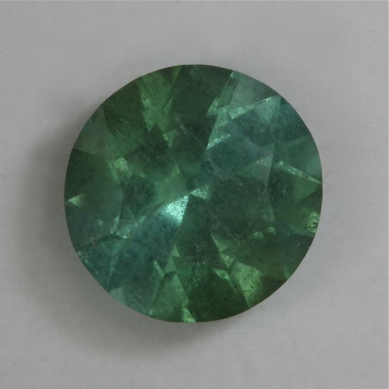 This standard round brilliant just doesn’t have the crystal to shine. None of its flaws flash or are distracting. But they help keep this gemstone’s beautiful, blue green color, from lifting it into being a pinnacle of power. It weighs 1.83 carats and it slides in with the droplets of color on color alone.