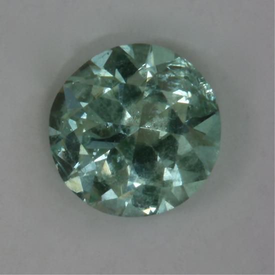 This small standard round brilliant is not large enough to show off its sea foam color well. Size does matter with tone value. It is bright, flashy and found a home with the IceTs. It weighs .52 carats.