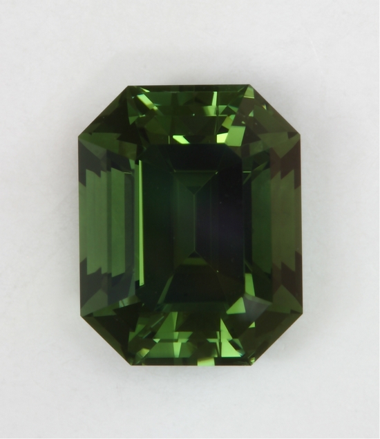 An emerald cut with its table perpendicular to the c axis, limited green flash  #445 This medium toned greenish emerald cut, has limited flash because it is cut with its table perpendicular to the c axis. It appears to be eye clean and with fine crystal. It weighs 2.75 carats.