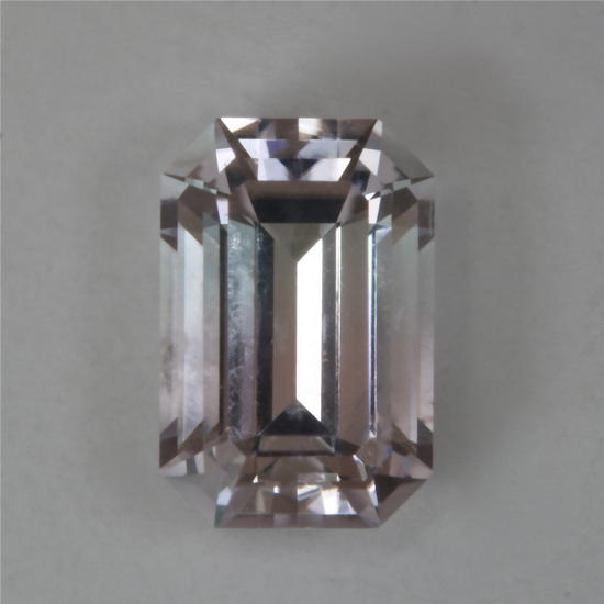 Flawless emerald cut, ground from a very pale bi-color from Afghanistan. Larger ring size.