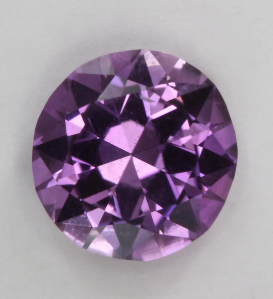 This purple says copper to me. This standard round brilliant is eye clean, which is unusual. It is bright and flashy with its medium tone level and it weighs .69 carats. Nice droplet.