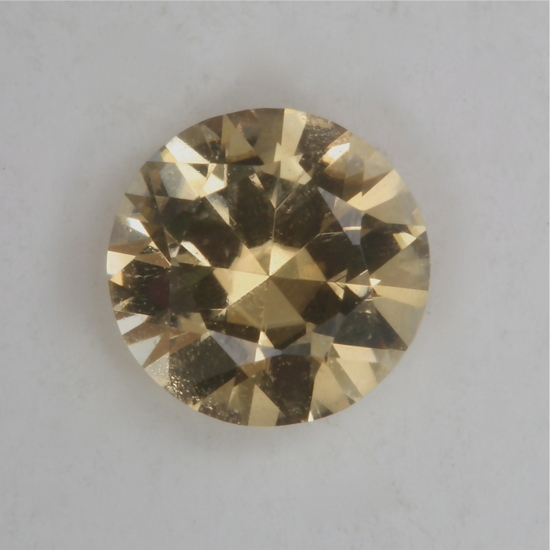 This standard round brilliant appears to be eye clean and is a real flasher. Its delicate pale pastel color drifts from yellow to golden. It weighs .58 and needs to be a droplet of color.