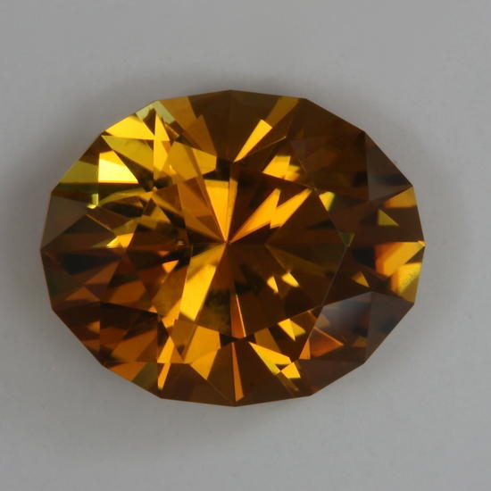 Nice eye clean oval that flashes more or less golden yellow or orange depending on the angle of view. It has good saturation under most lights, but may get "muddy" under some lights. It weighs 2.53 carats.