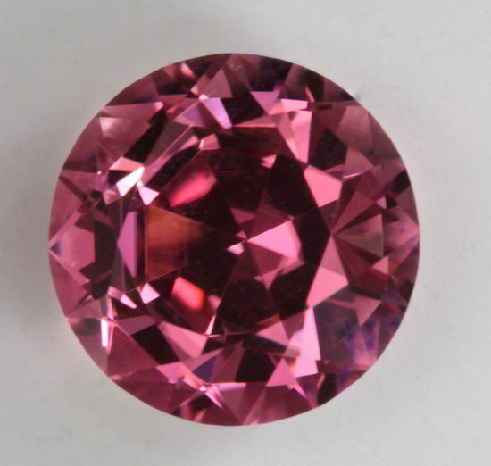 You can pass over this gemstone in the collection, if you just lust for color, but if you’re into pink, you have to stop. The gemstone has a pure pink statement that flashes from great crystal and polish. It weighs 3.97 carats and is eye clean. The tone level is enhanced by a split horizontal main pavilion cut that makes this middle of the road pink, a bit more special. But, the cut on this gemstone does have one draw back. Rounds in general can be set in commercial settings, but split horizontal main rounds are probably too deep to set in anything that is not a custom setting. The limitation is really not that important to me, because this stone deserves custom work.