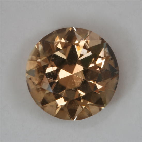 This standard round brilliant is a sweet treat for the droplets of color. A brown overtone maybe a liability for some gemstones, but not for the pretty piece. It is only a touch of honey brown and that makes the medium toned round a little bit different. A real plus in the colorful world of this collection. It weighs .89 carats.