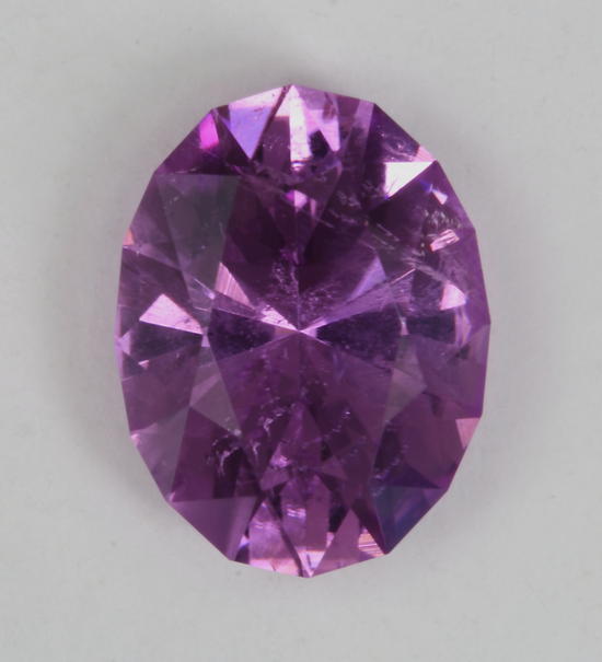 Great cuprian purple pink color that is only slightly included, Oval. This purple pink is a rare color in tourmaline. This gemstone is almost clean and has a very good saturation level for a purple. It has a good amount of flash and weighs 1.54 carats. It came from Mozambique.