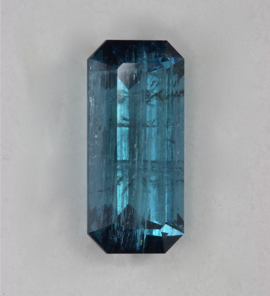 When I got this rough I knew that it was heavenly included, but it had wonderfully blue views down the c axis. I cut a long ratio emerald cut out of it, because that was the only practical gemstone I could get out of the rough. As this gem demonstrates, an emerald cut is not the way to go with included material, especially when it is under the table. Also great views down the c axis doesn’t always translate into a beautiful stone. Still this 2.80 carat stone is in the collect because it does have a nice blue even if the hope for copper content did not materialize.