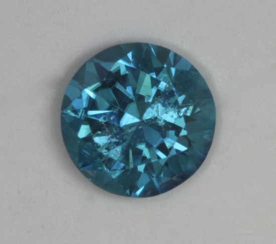 A great Namibian droplet of color, blue This standard round brilliant keeps the tradition of great Namibian blues alive. It has a nice medium plus tone level and a well saturated blue color. It weighs .56 carats.