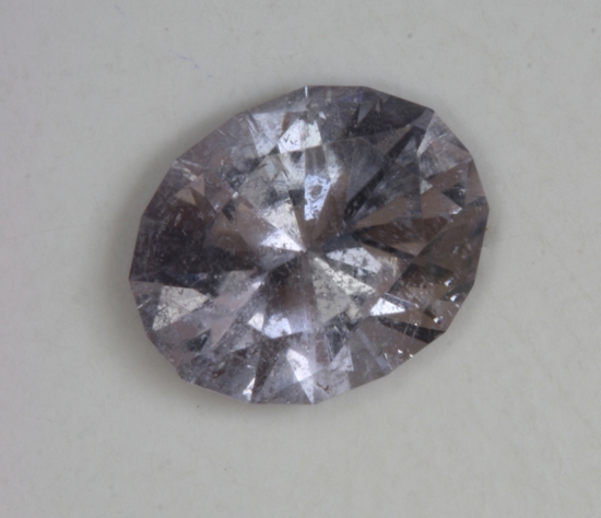 Included pale gray oval. This oval is welcome as a spreader of the colors and tone values in the collection of tourmaline. It is noticeably included in one corner. It weighs .94 carats.