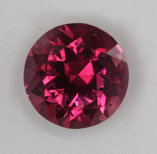 The inclusions in the standard round brilliant are the same as those found in the hot pinks. The rose, a pink with a touch of purple, droplet of color is still bright and flashy. It weighs 1.41 carats.