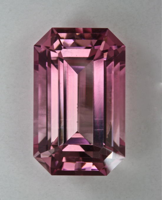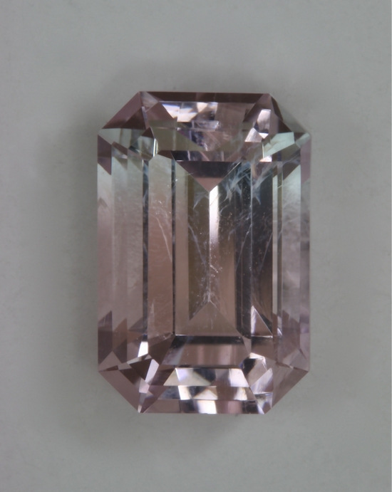 This graded pastel pink emerald cut weighs 10.50 carats.