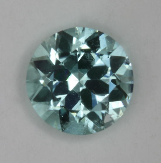 Eye clean, light pastel blue green, droplet of color This standard round brilliant is eye clean and a nice light blue green droplet of color. It weighs .76 carats.