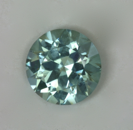 This is one cool stone of icy blue without a gray cast. It appears to be eye clean and of fine crystal. I think that few people would think that it is an indicolite because it not dichroic in the least and has such a light open feeling. This very flashy standard round brilliant weighs .94 carats and is a fine addition to the droplets. Late flash, the sun has come out and this pastel beauty has meet the stress test of every pastel and still displayed a nice blue in full sunlight.