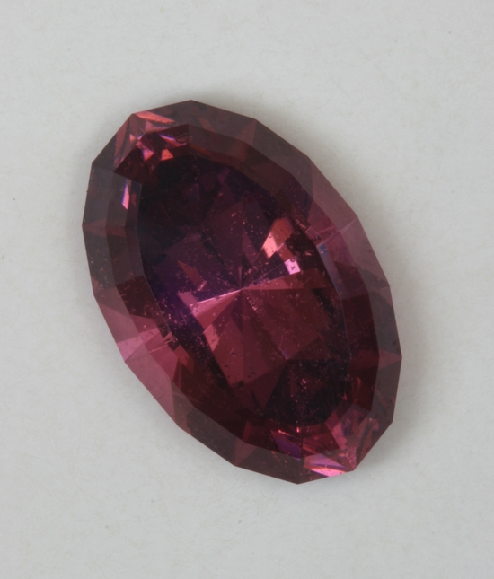 Sometimes all the parts add up to more than any individual part is valued. This oval appears to be eye clean with fine crystal, nice medium pink color and a longer ratio cut with a crown of three rows of stepped facets. None of these parts is exceptional, but the finish gemstone is certainly above average. It has such a clean, sleek, modern look, that it should highlight an exceptional piece of jewelery. It weighs 3.27 carats.