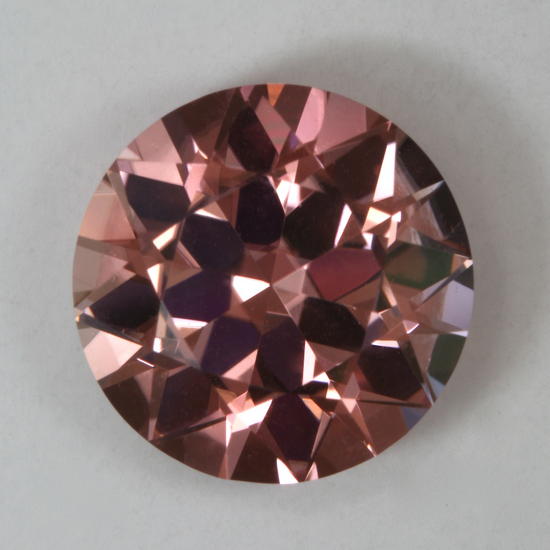 This standard round brilliant is eye clean and has a nice medium light tone peach color. The round has a very even color and is eye clean. It is as bright as a pastel can be. It weighs 4.45 carats.