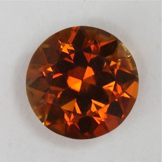 Great orange that is orange droplet of color  #627 This standard round brilliant is bright and eye clean. It is a true medium toned orange without brown problems. It weighs .87 carats and couldn't be kept from the droplets of color even if I want to.
