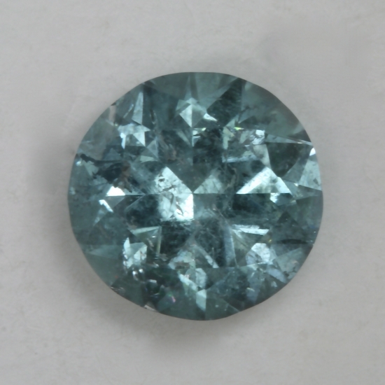 This standard round brilliant is hazy from a lower grade crystal cause my numerous faint flaws. Its medium sky blue color is easy on the eye. It weighs .70 carats and is a sure bet for being a droplet of color.