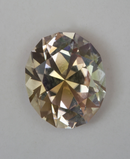 This oval has a frisky yellowish spot that is made by mixing the pink body with a bit of yellow green in the pavilion. It is eye clean and bright.. It weighs carats, Nigeria.