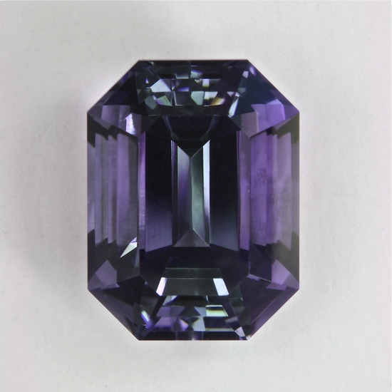 This is one of the original Laurellites that I sent to the GIA to be tested. It is without problems and is my best Lauellite, a name I use for cuprian tourmaline that has a reverse alexandrite color change. It weighs about 5 carats.