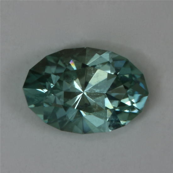 This oval has a nice even pastel blue color because it does not display any dichroism. It is flashy and appears to be eye clean. It weighs .80 carats,