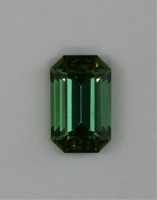 This is about as small as I have ever cut an emerald cut. It weighs .33 carats and is a dandy little open ended and well saturated green gem. It also appears to be eye clean.