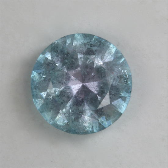 I purchased the rough for this standard round tourmaline as a bit of cuprian color, but my spectrometer said no copper. It is still interesting, even if it has moderate inclusion that inhibit the flash. They are at least spread evenly threw out the gemstone. Now why is it still interesting, because it has a pink eye at the culet and a thick pastel blue rind. By tilting the gemstone you can spread a little pink into the blue world and come up with a touch of purple, an eternal quest. This demoted and modest gemstone weighs .86 carats.