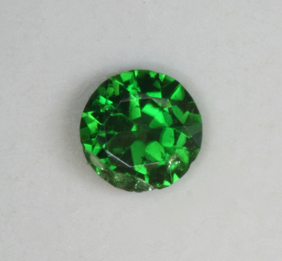 This small standard round brilliant is as small I have cut anything. It still has a great green hue because it is a chrome tourmaline. It weighs .11 carats.