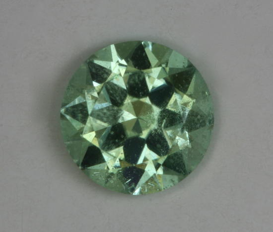 This standard round brilliant was cut from sea foam from Afghanistan. It is clean and attractive, but the material does not have the level of tone to really make it this small. It weighs .53 carats.