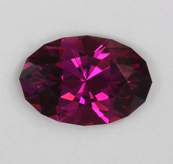 I have found the color of this posted gemstone, purple red, to be uniformly found in higher tone levels.  Many times tourmalines in that color range are only suitable for smaller gemstones, because it is so dark.  This oval is one of the more open and bright purple reds in the collection.  It is still on the dark side, but with its fine crystal and eye clean support, it is a crisp, flashy winner.