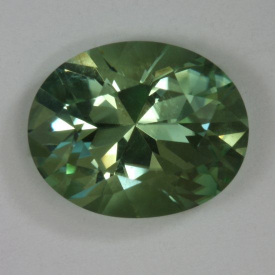 This oval is bright and with fine crystal. Its color is quite pale, but the green is not lost. It appears to be eye clean and weighs 1.87 carats.