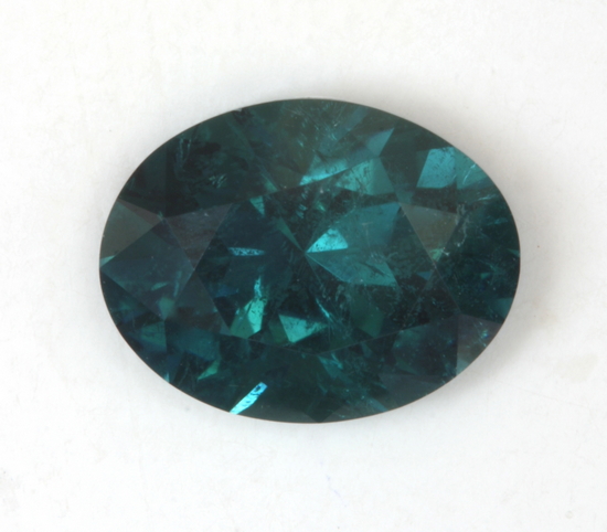 The inclusions under the table of this darker mostly blue gemstone are well hidden by the gemstones richness. It needs movement to fully appreciate its deep flash. It weighs1.31 carats.