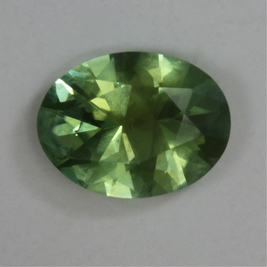 This oval is an eye clean, medium toned treat of yellow green color. It weighs1.00 carat.