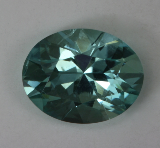 This minty after dinner candy is mostly blue. It has good crystal and flash, but has a slight inclusion on the edge of the girdle. It weighs1.60 carats.