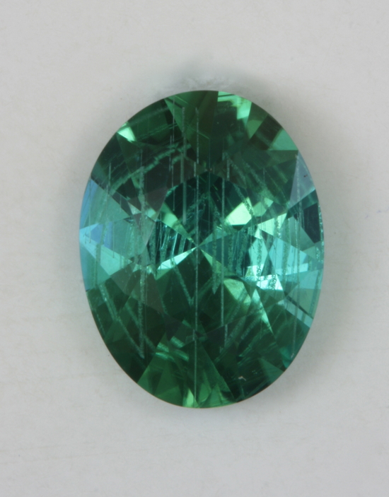 This mostly green with a light shade of blue modifier is different. It has an array of whitish inclusions that have a squarish pattern. They are not growth tubes and while very visible to the eye, they just make it more interesting to me rather than diminish its beauty too much. There is some diminished transparency and it weighs 1.17 carats.