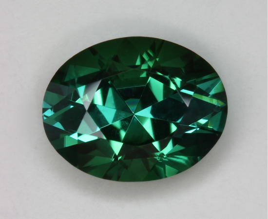 This oval has a flatter crown and is eye clean. It is dichoric and the final mixture is a good blue green. It weighs 1.77 carats.
