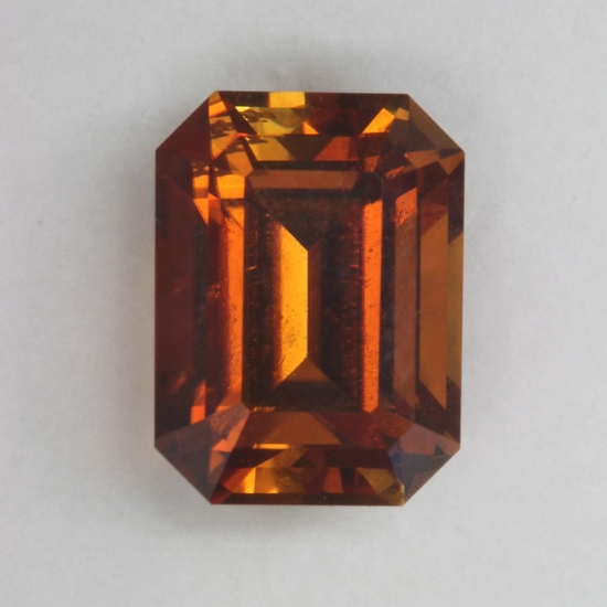 I like this color. Just brown does not do it justice because it is a vivid luxuriant brownish orange with yellowish flashes at times. It would be called a dravite, this material from East Africa is much better than most. It appears to be eye clean and has not problems with flash. It weighs 2.01 carats.