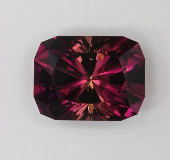 I like this stone. It is strongly dichroic, but the purplish ends that dominate the Barion cut cushion are not too dark. It appears to be eye clean and weighs a flashy 4.70 carats.