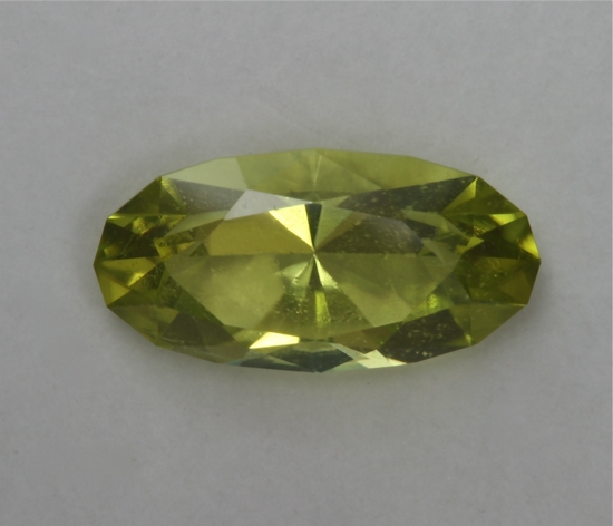 A long ratio oval that does not go for the gold or green in its vivid yellow color. The extra effort oval appears to be eye clean and with good optics for such a narrow stone. It is a very pleasing1.72 carats.