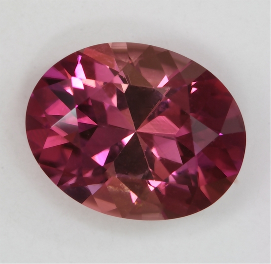 The ends of this chubby oval are a fine pink with a touch of purple and not too dark. The sides of the oval are more a pastel pink. It appears to be eye clean and weighs 1.78 carats.