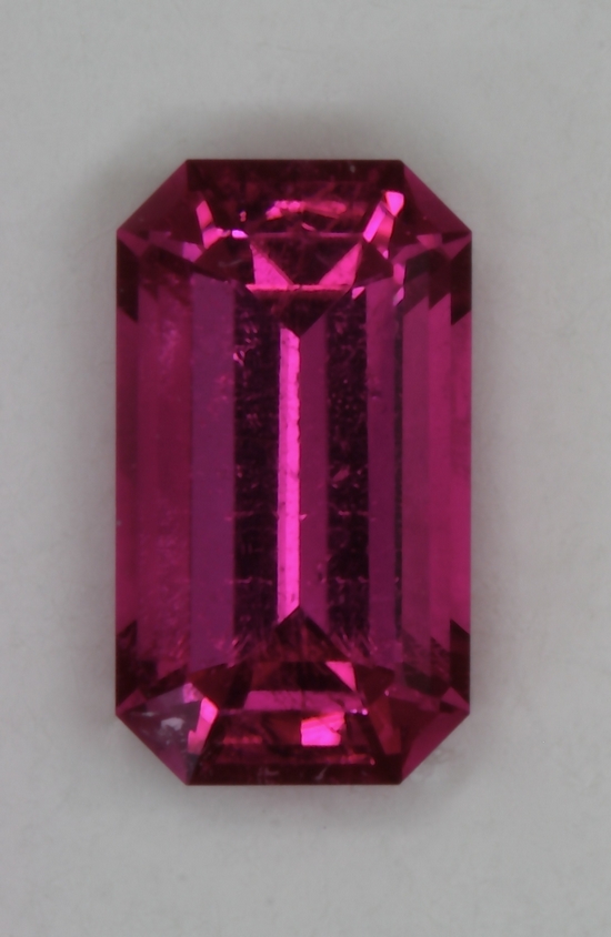 This red emerald cut has a touch of purple and is lightly included. Still it is eye candy and weighs .53 carats.