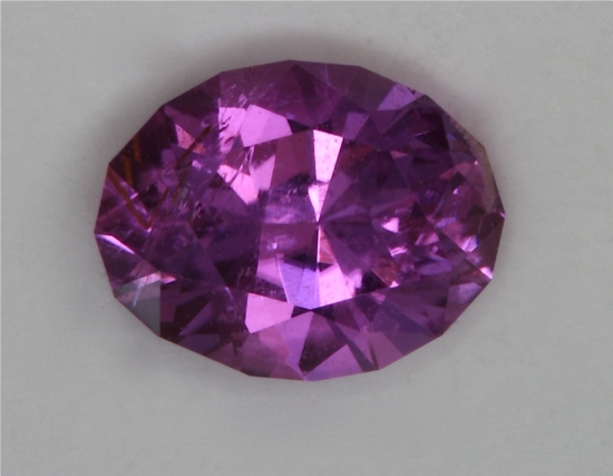 This standard round brilliant has a great cuprian color of reddish purple. It is not significant affected by the moderate inclusions that are expected in cuprian tourmaline. It has a moderate tone level and weighs .73 carats.