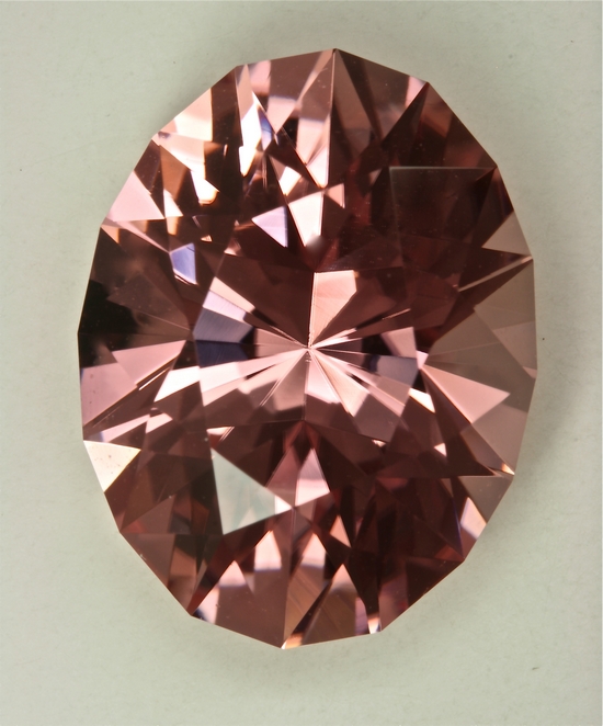 This is a solid pink oval. It has excellent crystal, a medium tone level and a pink that does not reach the hot stage. It is not dichroic and weighs 4.36 carats.